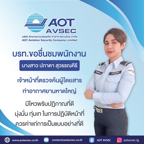 บรท. ขอชมเชยพนักงานฝ่ายปฏิบัติการท่าอากาศยานหาดใหญ่ (ฝหญ.)