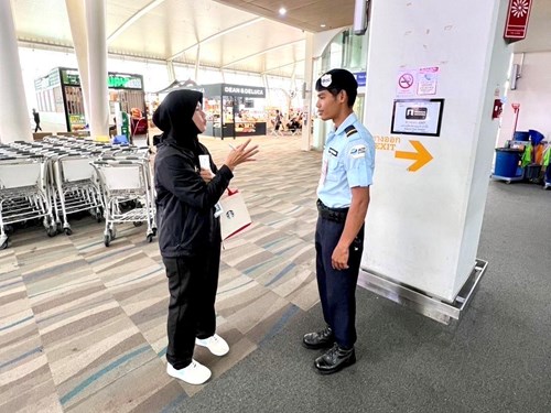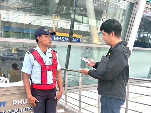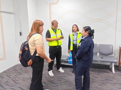 และคุณณิชาภา ดีอินทร์ เจ้าหน้าที่มาตรฐานและควบคุมคุณภาพการรักษาความปลอดภัย อาวุโส พร้อมด้วยทีมงานฝ่ายมาตรฐานและควบคุมคุณภาพการรักษาความปลอดภัย ท่าอากาศยานภูเก็ต ร่วมการวางแผนและเข้าตรวจสอบขั้นตอนการปฏิบัติงานของ ฝภก.