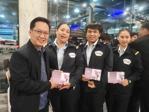 ภาพบรรยากาศการแจก snack box ช่วงเทศกาลปีใหม่ 2569 บรท.ฝสภ. โดยมีคุณอำนาจ เอ็นดู จสภ. พร้อมด้วยคุณสุขชัย ภิรมย์กิจ นตค.ฝสภ. คุณพรมงคล วรรณกริ่ง นรภ.ฝสภ. และคุณศรชัย สมพงษ์ นรภ.ฝสภ. เป็นผู้แทนมอบ snack box ใหัแก่พนักงานฝ่ายปฏิบัติการท่าอากาศยานสุวรรณภูมิ เพื่อเป็นขวัญกำลังใจในการปฏิบัติหน้าที่ระหว่างช่วงเทศกาลปีใหม่ที่ผ่านมา