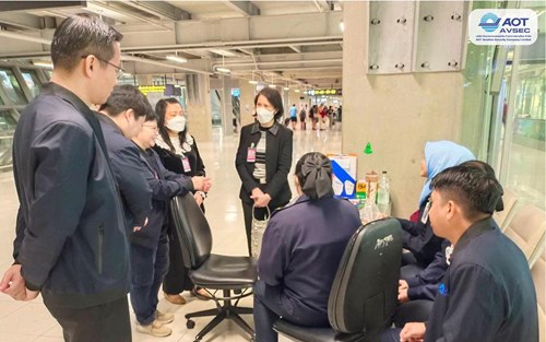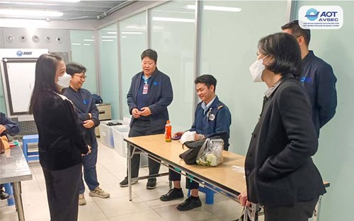 คุณสิริพร โฉมยงค์ รองกรรมการผู้จัดการสายงานทรัพยากรบุคคล พร้อมด้วยคุณกัญญาภัทร ตยางคานนท์ จพบ. คุณสุรีย์ โสภาน้อย นบค. และคุณโฉมวลี ณ เชียงใหม่ นสจ. เข้าตรวจเยี่ยมการฝึกอบรมสำหรับพนักงานตรวจค้น รุ่น 16/2569 และพนักงานฝ่ายปฏิบัติการท่าอากาศยานสุวรรณภูมิ (ฝสภ.) ณ จุดปฏิบัติงาน โดยมีคุณอำนาจ เอ็นดู จสภ. คุณเฉลิมเกียรติ ขันทะพันธ์ ชสภ. เป็นผู้ให้ข้อมูลและสนับสนุนการตรวจเยี่ยมในครั้งนี้ เพื่อสร้างขวัญกำลังใจพร้อมให้คำแนะนำโครงการ ข้อมูลต่างๆ เกี่ยวกับการทำงาน และเป็นแนวทางให้กับพนักงานต่อไป