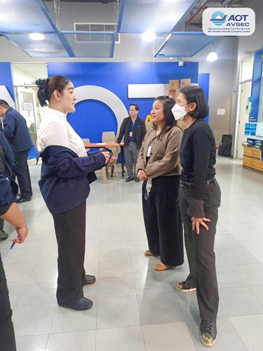 บรท. นำโดย คุณสิริพร โฉมยงค์ รองกรรมการผู้จัดการสายงานทรัพยากรบุคคล พร้อมด้วยคุณกัญญาภัทร ตยางคานนท์ จพบ. คุณสุรีย์ โสภาน้อย นบค. คุณโฉมวลี ณ เชียงใหม่ นสจ. และคุณปวีณ จันทร นสร. ลงพื้นที่ตรวจเยี่ยมพนักงานตรวจค้น ฝ่ายปฏิบัติการท่าอากาศยานสุวรรณภูมิ (ฝสภ.) ณ จุดปฏิบัติงาน เพื่อรับทราบข้อจำกัด อุปสรรค เพื่อนำไปสู่การแก้ไขปัญหา